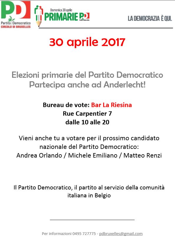 Vi aspetto insieme ai compagni del Partito Democratico, sarà un’altra bella occasione per valorizzare il ruolo della comunità italo-belga del nostro quartiere.