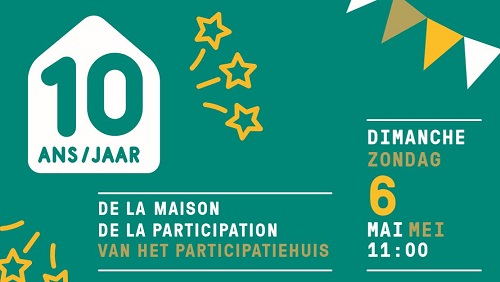 Ce dimanche 6 mai, la Maison de la Participation d’Anderlecht célèbrera ses 10 ans d’existence, en présence du Bourgmestre Eric Tomas, en charge de la Participation citoyenne, et du collège communal. A cette occasion, un spectacle de théâtre-action sur la citoyenneté sera organisé sur la place de la Résistance, suivi d’un apéritif dînatoire en musique.